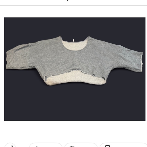 Cozy and stylish oversized cropped and distressed gray sweatshirt.