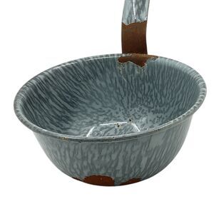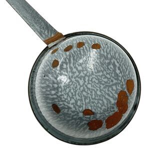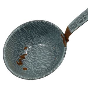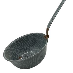 Gray Swirled Graniteware Ladle Enamel Scoop Spoon Long Handled Hook Farmhouse