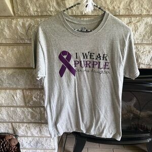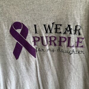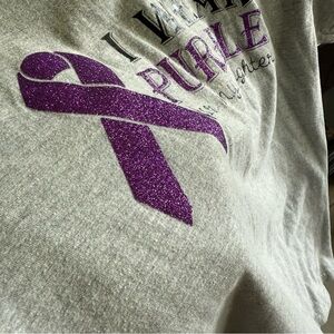 Gray T-Shirt with Purple Ribbon Design Epilepsy Pancreatic Cancer Awareness