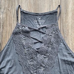 Super soft gray tank with criss cross and lace detail - worn once