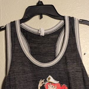 This stylish tank top features a sleek gray color with contrasting lighter gray trim around the neckline and armholes, creating a classic ringer-style effect. The sleeveless design ensures comfort and ease of movement, making it a versatile addition to any wardrobe. Perfect for casual outings, this top combines simplicity with a touch of retro flair.