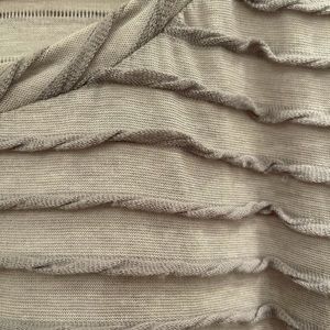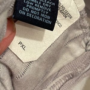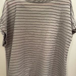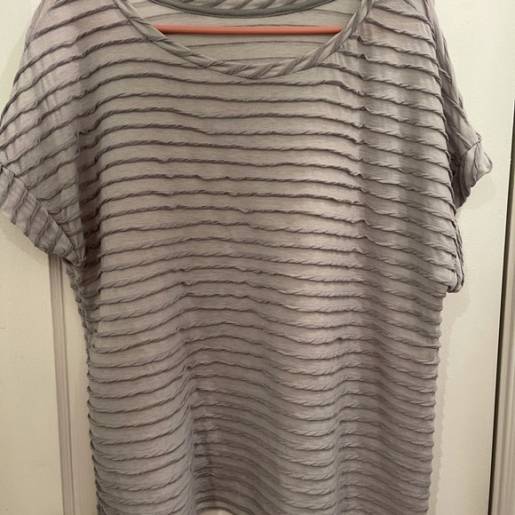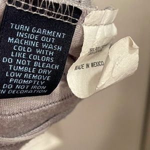 Gray tee shirt. Polyester and rayon mix.