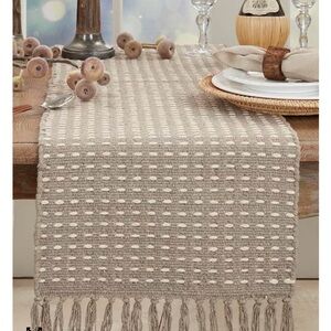 Enhance your dining experience with this elegant gray textured table runner. Perfect for adding a touch of sophistication to any table setting.