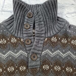 Gray Timberland Convertible Button Mock Turtleneck Fair Isle Sweater size Large