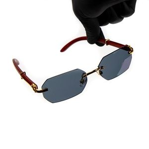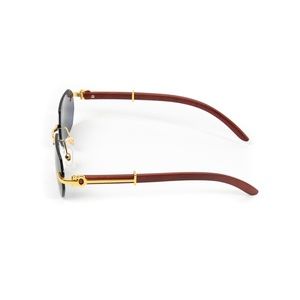 Gray Tint Gold Frame Woodgrain Hip Hop Mens Vintage Sunglasses