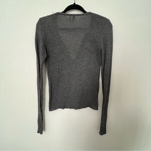 Grey long sleeve (Ariana Grande style) V-neck waffle knit top :)
