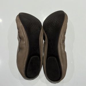 Gray Tory Burch ballet flat. The elastic makes them very comfortable! Always worn with no show socks. I have 5 pairs that I wore for work, but since I work from home now, I want to sell them all!