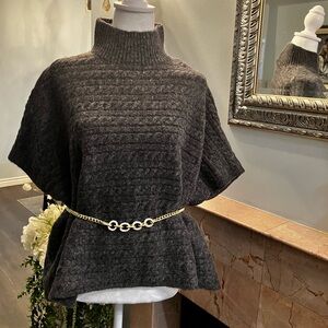 Stylish gray turtleneck sweater poncho cable knit 🧶 style. Great for the fall season. Belt available sold separately