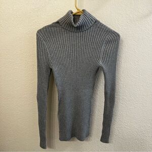 Gray Turtleneck Ribbed Sweater (Size Medium)