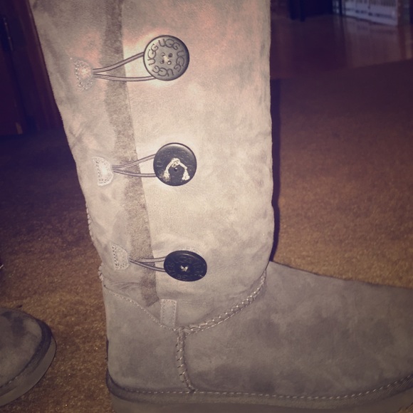Gray UGGS , size 9 Bailey buttons | tall | with a missing button, since the button is missing I'll give you $10 off if you buy them