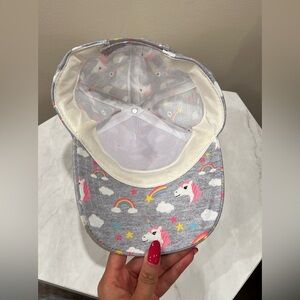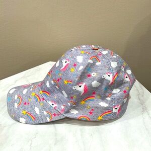 Adjustable Fun gray cap with unicorn and rainbow design. Perfect for adding a playful touch to any outfit.