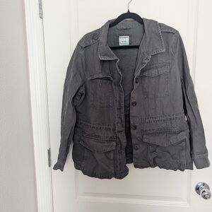 Stay stylish and comfortable with this versatile gray utility jacket. Perfect for layering, it features multiple pockets for convenience.