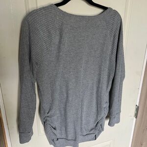Gray V-Neck Ribbed Women's Top