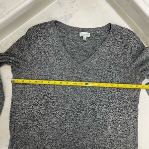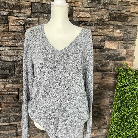 Stay cozy and stylish with this elegant gray V-neck sweater. Perfect for any occasion, this sweater offers both comfort and a chic look.