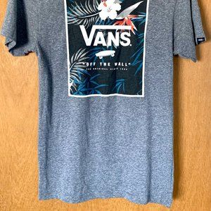 Gray Vans Graphic Tee T-Shirt Female Junior's Small Tropical Flowers EUC