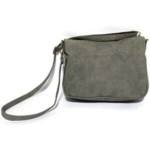 Gray Vegan Leather Crossbody Purse Handbag With 5 Zippered Pockets 11" x 8"