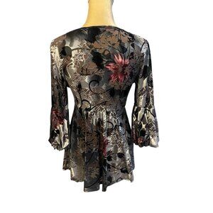 Velvet Burnout Floral V-Neck Babydoll Top Size Small Vamp Grunge Whimsygoth Y2K. Good preowned vintage condition. No stains or holes. Please see photos for details and measurements. Thanks for looking.