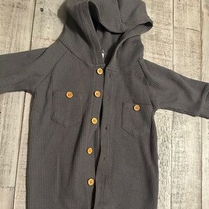 Gray Waffle Hoodie Footie One Piece with Ribbed Cuffs & wooden buttons, 6-12M
