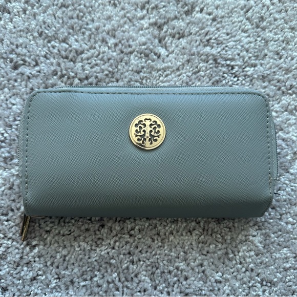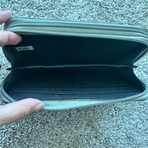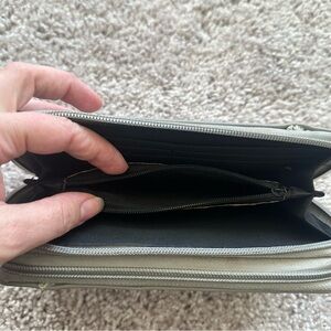 Gray wallet that has hooks to be turned into clutch That had broken and is only usable as a wallet