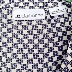 Gray White Button Down Blouse Medium EUC Silver Metal Buttons Adds 🩶