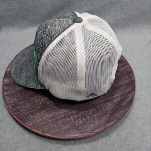 Gray & White Mesh Trucker Hat With Green Palm Tree Embroidery Adjustable Snapbac