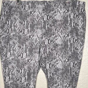 Gray & White Snake Print Women Leggings Pull-on 3X Cotton Blend Stretch