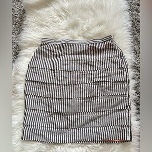 This stylish gray and white striped mini skirt is perfect for any occasion. The tiered design adds a touch of flair, while the comfortable fit makes it easy to wear all day long. Dress it up with heels and a blouse or keep it casual with sneakers and a tee. This versatile skirt is a must-have for any fashion-forward woman's wardrobe.