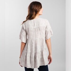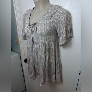 Gray White Tiered Ribbed Knit Babydoll Tunic Top with flutter sleeves #1509