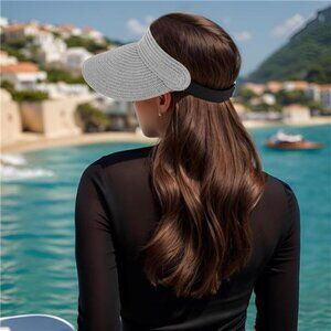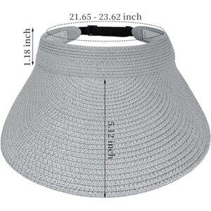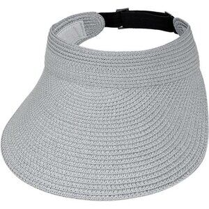 Gray Wide Brim Straw Sun Visor Hat – Packable Straw Visor with Adjustable Fit