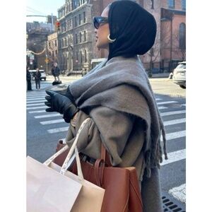 Gray Wide Shawl Scarf With Tassels Fuzzy Knit