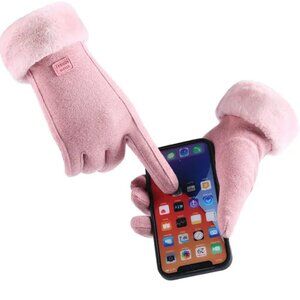 Gray Winter Gloves for Women Elegant Touchscreen Gloves with Faux Fur Cuffs