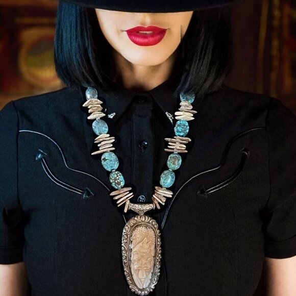 Gray Wolf Collections Cheyenne Bear Eagle Dance pendant native bone necklace turqouise