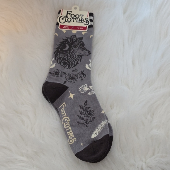 Elevate your sock game with these stylish gray socks featuring a bold wolf pattern. Perfect for adding a unique flair to any outfit.
