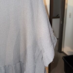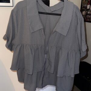 Elevate your style with this chic gray ruffled top. Perfect for any occasion, this top offers a blend of comfort and elegance.
