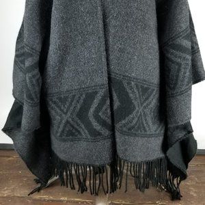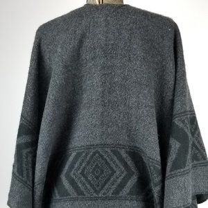 Grey/Gray Wool American Eagle Outfitters Poncho / Open Cardigan with Black Geometric Pattern