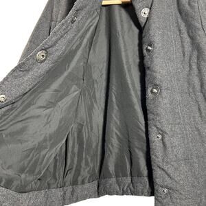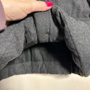 Gray Wool Blend Puffer Jacket Quilted Button Up Coat Warm Casual Outerwear