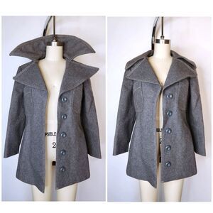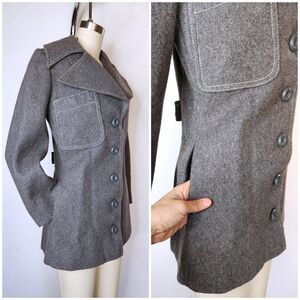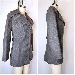 Gray Wool Jacket Pointed Collar 60s 70s Winter Designed in California USA XS