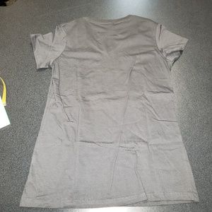This is a V Neck Gray Workout Tee Stars N Stripes. Laying flat the Medium Shirt Measures laying flat: Chest 16" inches by 25" Length. This shirt has never been worn and came with no tags. This shirt is known to shrink when washed. P0049