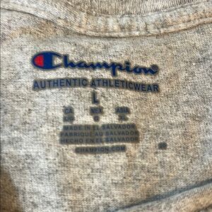 Gray Yale University T-shirt with bold navy lettering. Features the university crest. This is a UNIVERSITY OF YALE Bulldogs T-shirt. It is a Size L. Officially Licensed by CHAMPION. It is in great condition. It is CLEAN. No Stains, Tears, or Defects.