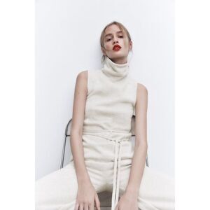 Gray Zara High-Neck Tie-Waist Sleeveless Soft Knit Top (NWT)