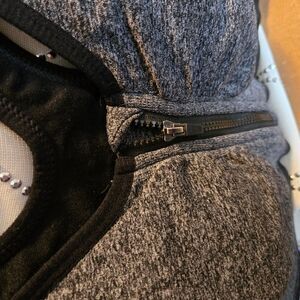 This gray sports bra offers a zip-front design for easy wear and a V-neckline for a stylish touch.