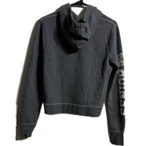 Gray Zip Up Sweater with Text Design