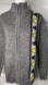 Stylish gray zip-up sweater featuring a geometric pattern with black, white, and yellow accents. Perfect for casual wear.