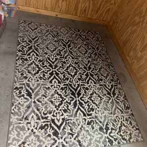 Stylish gray and black patterned area rug. Perfect for adding elegance to any room. I believe it’s a 4’x6’ or 5’x7. Message me if you need me to measure it.