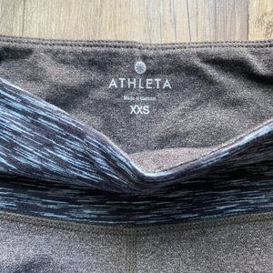 Gray/blue pattern Athleta leggings. Perfect condition, these have no pilling on them and are so soft and comfy! XXS equivalent to 2 in Lululemon, for reference.