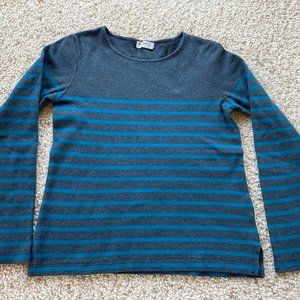 Stylish gray and blue striped women's top. Perfect for casual outings or a relaxed day at home.