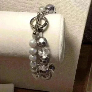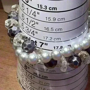 Gray and Clear Glass Bead Bracelet Stretch Bracelet