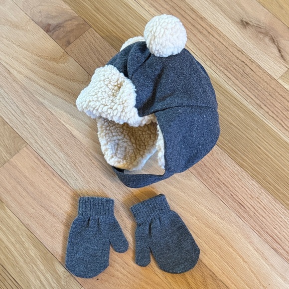 Keep your little one warm with this adorable gray and cream bear hat and mittens set. Perfect for chilly days, this set combines comfort and style.