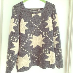 Gray and Ivory Star Wool Sweater