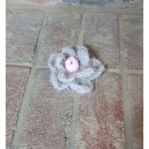 Handcrafted gray and pink flower scrubby. It can be used in the kitchen or to pamper your skin in the shower. It's up to you. Either way, it will bring beauty and charm to your home. Approximate measurements: 5 in x 5 in x 2 in.